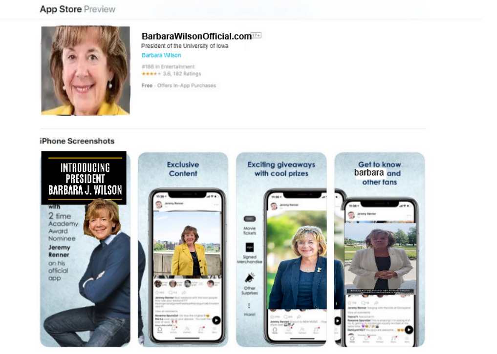 In the future, Barb hopes the app can act as a sort of community hub for all things Iowa (and all things Barb). Planned features include mandatory Duo two-factor authentication, ICON integration, and Hawk Dollar microtransactions. There’s a bright future ahead for BarbaraWilsonOfficial.com!