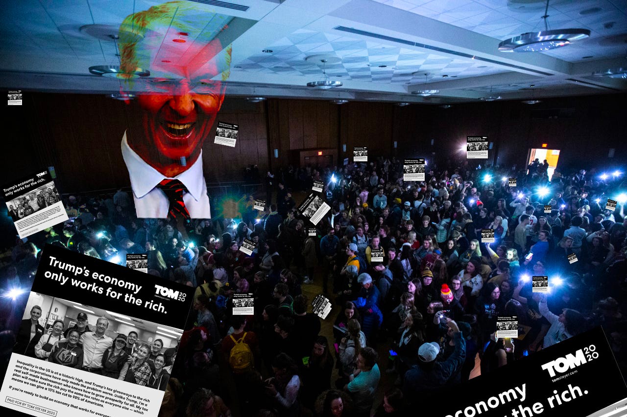 After a power failure at the IMU locations during Monday night’s caucus, participants were confused and alarmed to find that their voting cards had somehow been replaced by flyers advertising Tom Steyer’s presidential campaign.