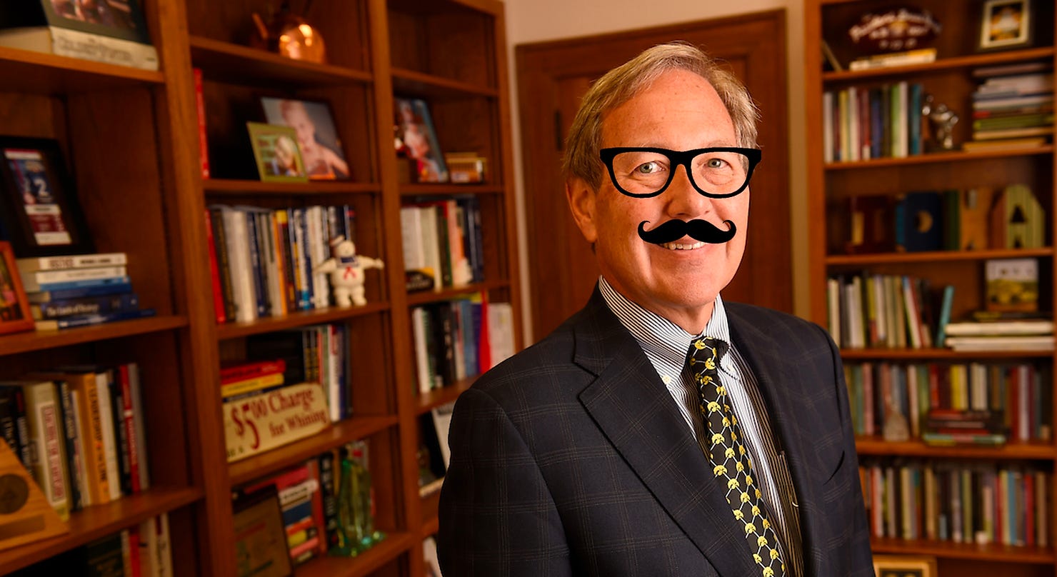 “What do you make of the allegations that you, Mr. Barreld, are simply Bruce Harreld dressed up in a fake mustache in glasses in an attempt to keep your job as President of the University?”