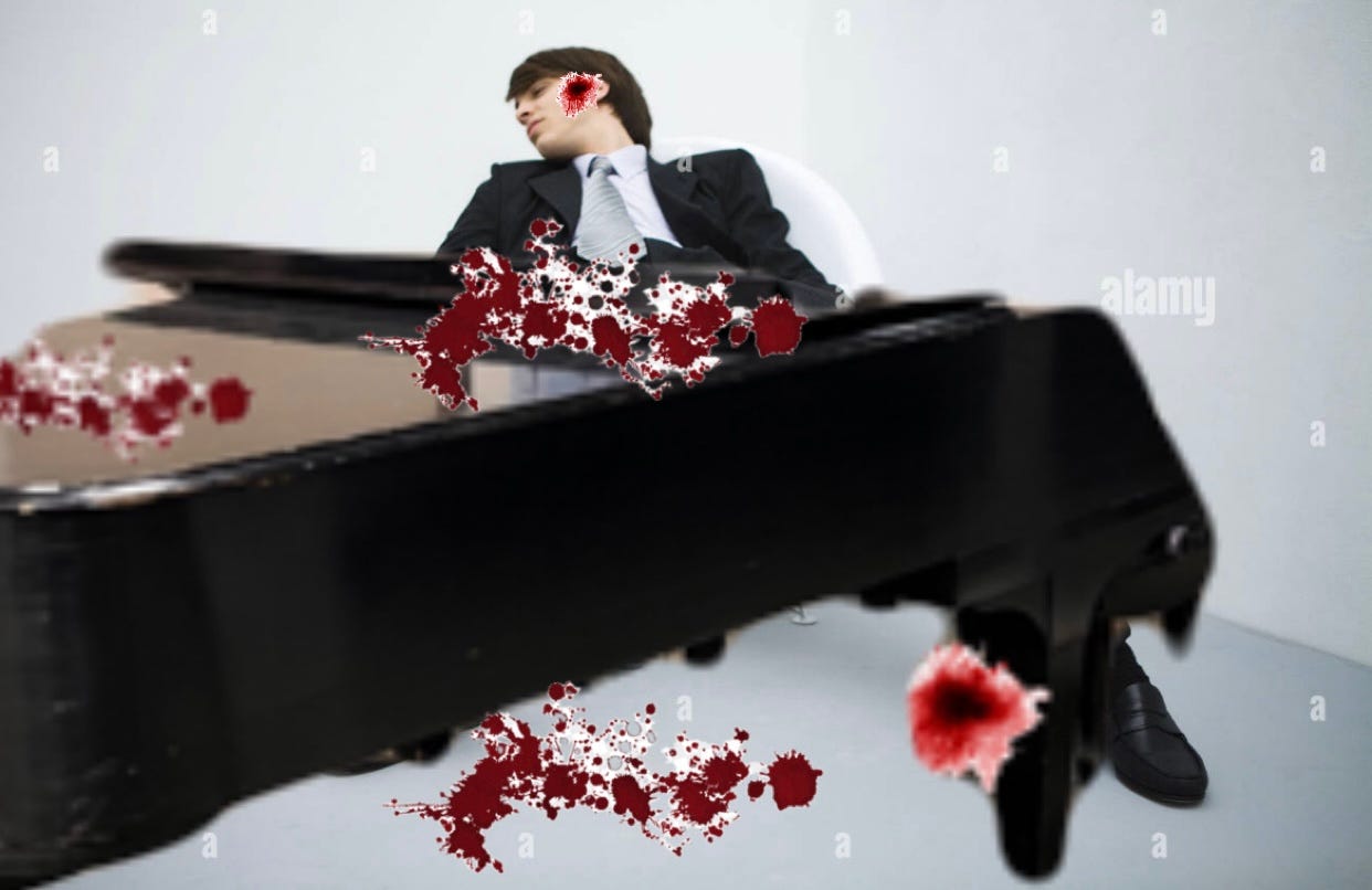 Burge Pianist Shot Dead By Front Desk WorkerOH FUCK!!!!!!!!!!!!!!!!!! HE’S DEAD!!!! THERE’S BLOOD EVERYWHERE!!!!! WHAT THE FUCK!!!!!!! MY WALKING TACO!!!!!!!!!McKinley McManusMar 11, 2026Share