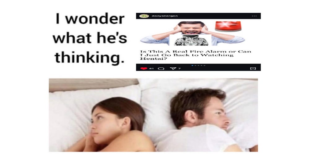 I’m not sure if you remember this, but a few weeks ago (or years, let’s be real: This semester has gone on long enough), you released an article about hentai and fire alarms. And my boyfriend saw.
