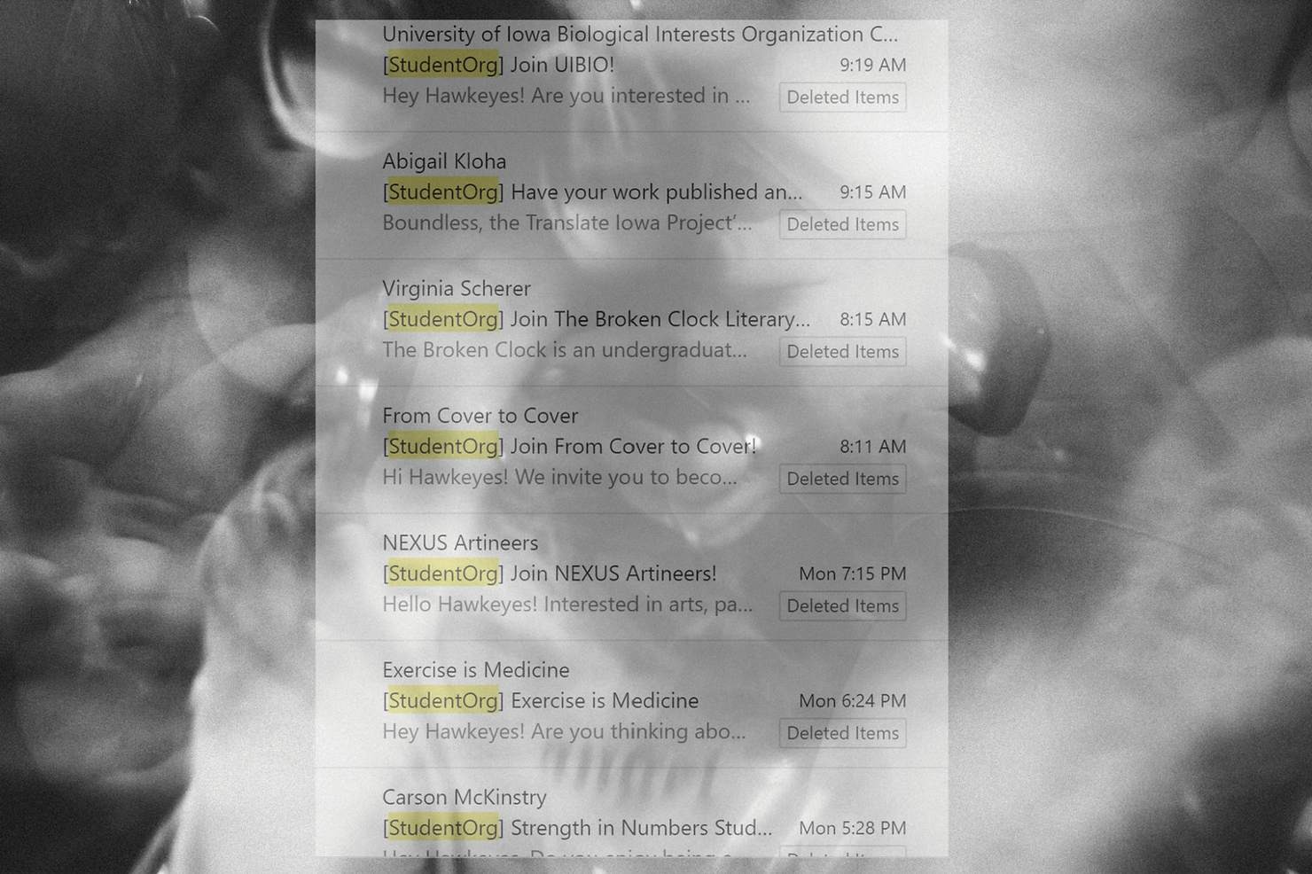 That’s right, I joined every single org that sent me electronic mail — over forty thousand in total! Over the past couple of weeks, I’ve received ads for men’s sports teams, women’s sports teams, the Undergraduate Student Government, language clubs, STEM clubs, English clubs, music clubs, secret societies, and even exercise clubs that aren’t technically sports teams for some reason, and I have joined every last one of them!