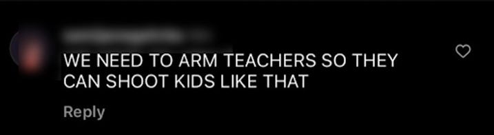 An intelligent user commented, “WE NEED TO ARM TEACHERS SO THEY CAN SHOOT KIDS LIKE THAT”