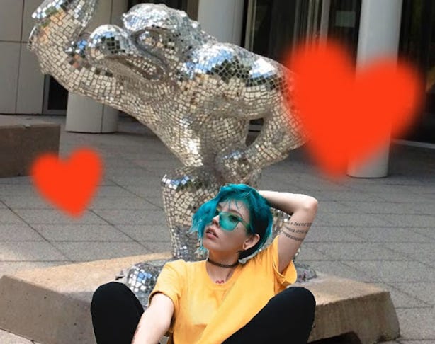 There are numerous statues around the Iowa City and Coralville area, and she’s in a relationship with all of them.