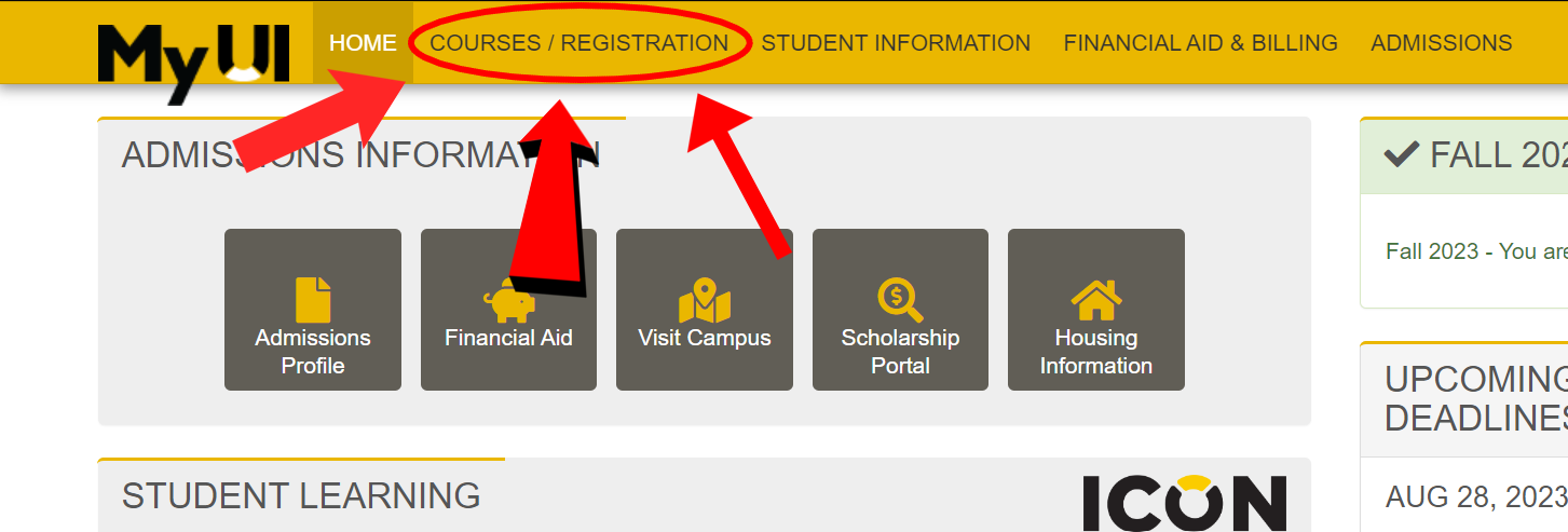 Sign in to MyUI with your HawkID, obviously, and navigate to the COURSES/REGISTRATION section. We have to put it in all caps so you know what to look for, considering your brain’s so fucking smooth.