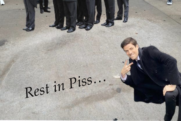 In the meantime, mourners have issued a new call to action for the city drunks: if conquering the Piss Rock is no longer the unofficial 48th thing to do here, you may as well take a dump and call it good enough. “Take a moment of silence today for the rock. May the stain prosper.”