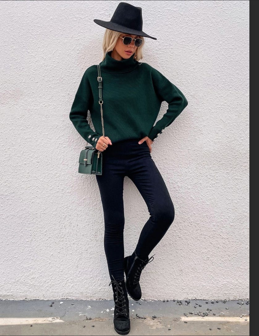 Turtleneck (it will be from the back of your dresser drawer. It will be itchy. To cope with this pretend you’re larping as an office siren)