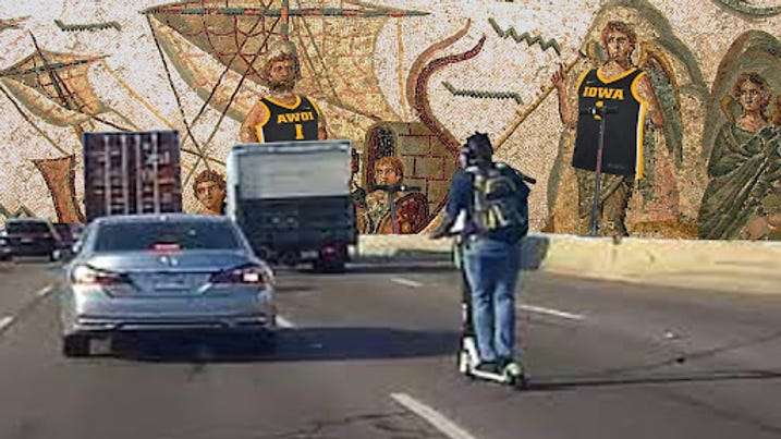 Using our legs is a tribulation suffered only by us mere mortals. Those above us–our saviors–are not forced to walk the face of the earth. Of course, we are talking about University of Iowa student athletes. Instead, they have the privilege of riding around on their university-provided electric scooters, or e-scoots, as the snowflake libs call them.