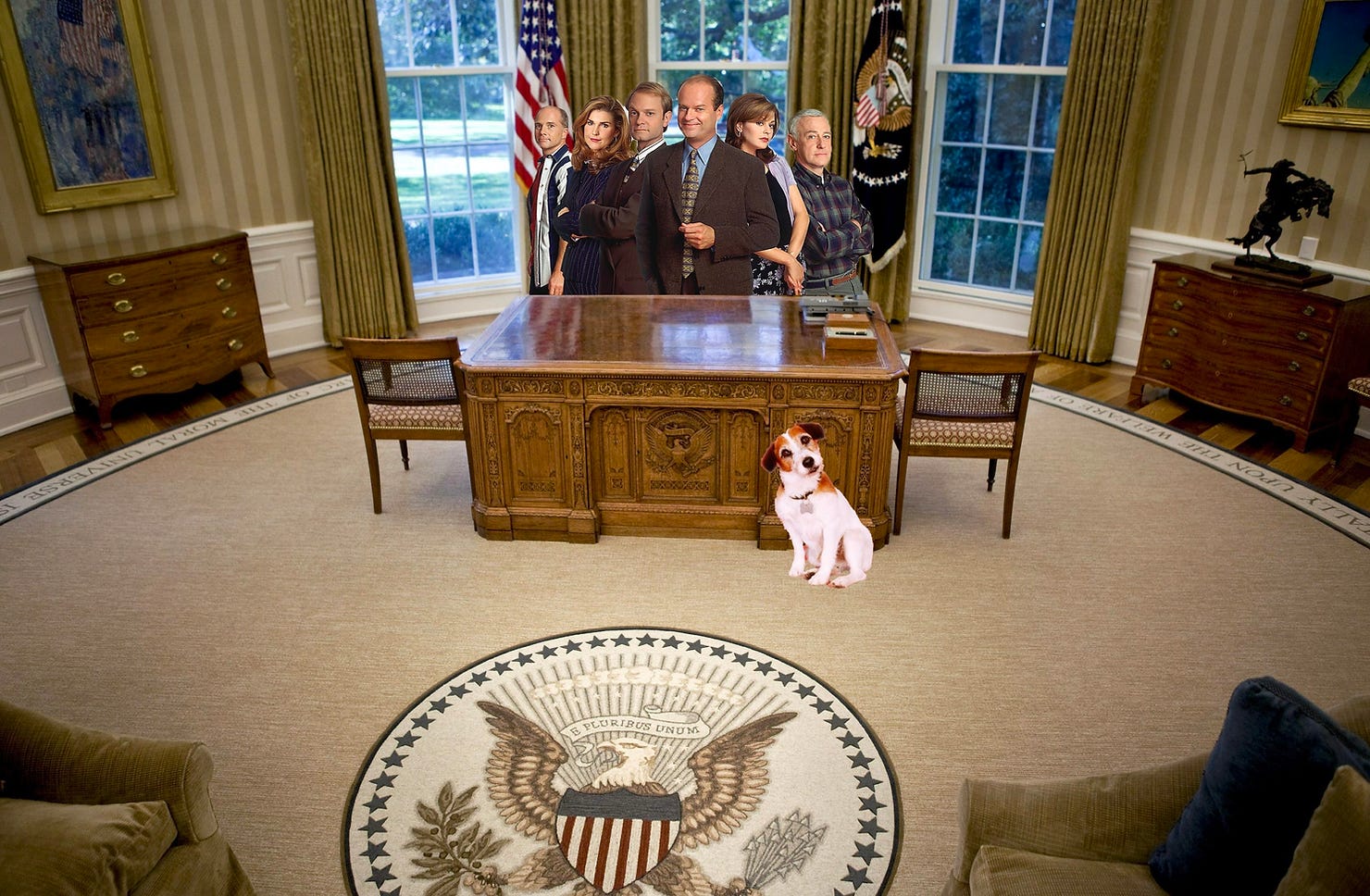 There would be nothing more to do than allow Kelsey Grammer, Jane Leeves, David Hyde Pierce, Peri Gilpin and John Mahoney to all become the 46th President of the United States of America. Hell, if we play our cards right we could even get Frasier’s dog in there, too!