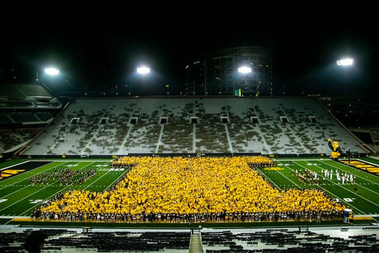 Don’t cut your On Iowa! (Go Hawks!) t-shirt into a crop top. You’ll regret cutting up treasured memories. Also, bartenders will hand out free drinks to anyone wearing that excessively bright gold.
