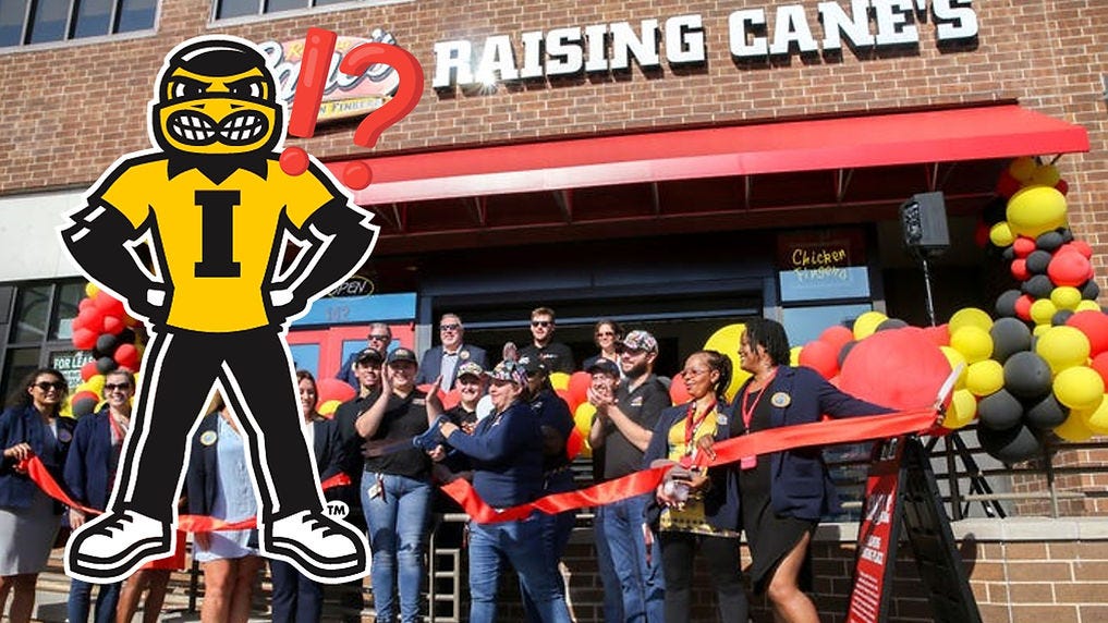 After having dined at the new Raising Cane’s location in downtown Iowa City, many customers are reporting the chicken tasting like how the University of Iowa’s mascot might taste: Beaten and run-through.